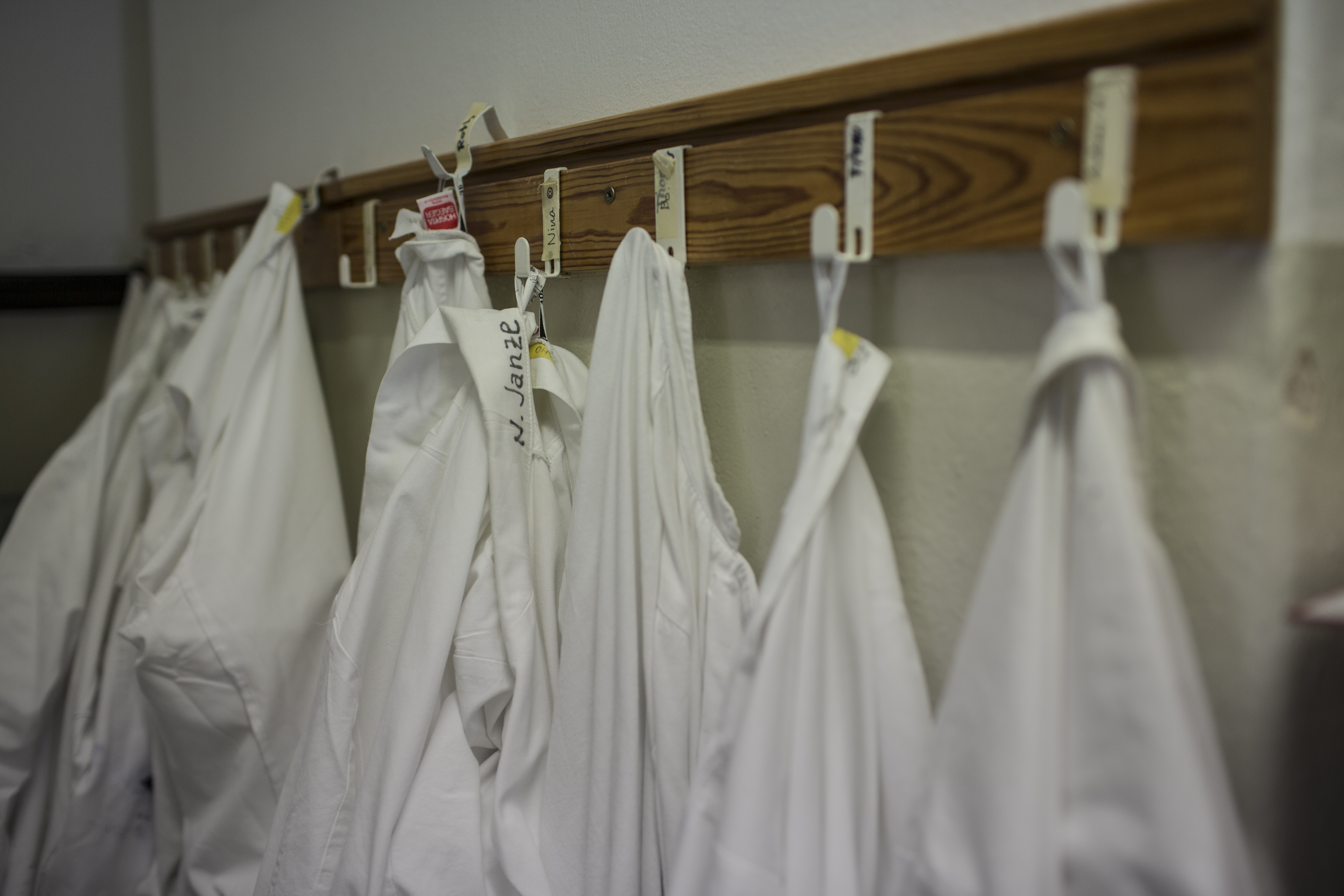 Laborkittel. Aufgenommen im Institut für Mikrobiologie.