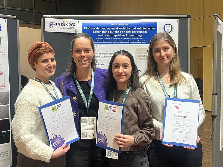 Auch in diesem Jahr war die AG Kleintier auf dem DVG-Vet-Congress in Berlin vertreten, um aktuelle Forschungsergebnisse zu präsentieren. Das gesamte Team freut sich mit unseren Preisträgerinnen und gratuliert Alicia Rojahn, Marie Greiling-Mackert und Emily Loch ganz herzlich zu ihren Auszeichnungen im Posterwettbewerb.